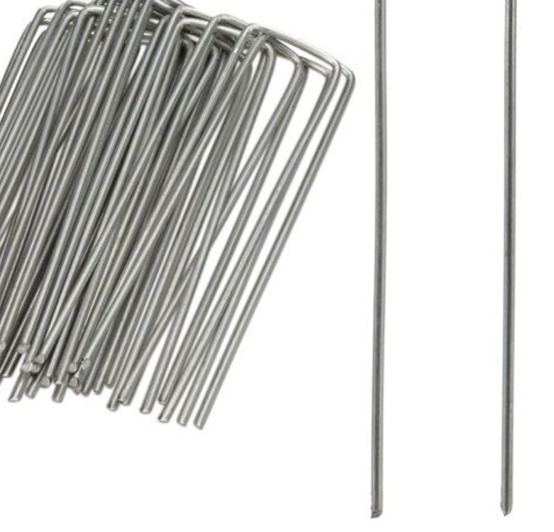 stevinge pinnen voor het vastmaken van worteldoek op de hoeken van perceel of plantvak , op die manier blijft alles mooi afgesloten voordat de afwerking erop komt . Let wel extra sterke kwaliteit !